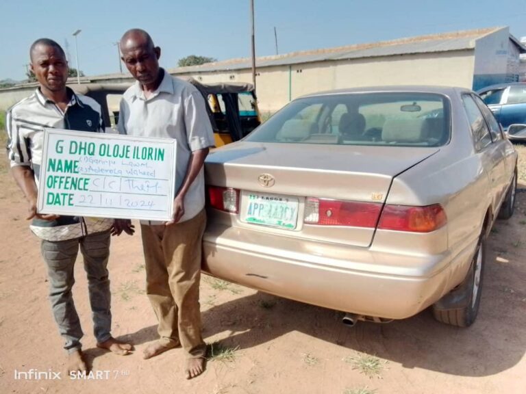 Acting on intelligence received from a motor spare parts dealer in Ipata-Oloje, Ilorin, detectives apprehended two suspects on 22nd November 2024 at about 6:00pm.