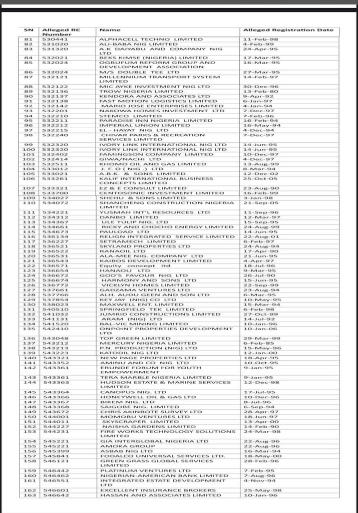 This was made known in a notice posted on the Commission’s official X handle on Friday. The Commission stressed that it has removed the companies from the database.