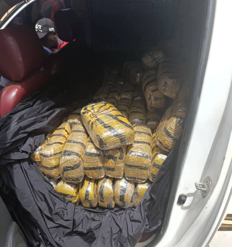 “The suspects, who were dressed in mobile police uniforms, were found with two Toyota Hilux vehicles loaded with substances suspected to be cannabis.