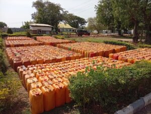 Aliyu revealed that a total of 1,510 jerrycans of 25 litres each and 30 drums of 200 litres were recovered, amounting to 43,750 litres, with an estimated duty-paid value of ₦43.75 million.